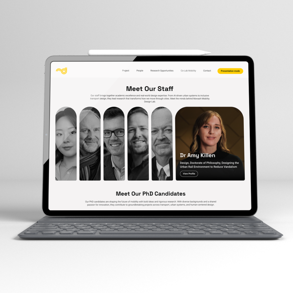 This Capstone project focuses on reimagining the digital experience of Monash University’s Mobility Design Lab (MDL), a research hub shaping the future of mobility. Despite MDL’s innovative work, its previous website lacked clarity, engagement, and strong storytelling to communicate a decade of achievements. Our redesign introduces a human-centered digital ecosystem that improves visibility, enables exploration of mobility innovations, and fosters collaboration between students, researchers, and industry partners.